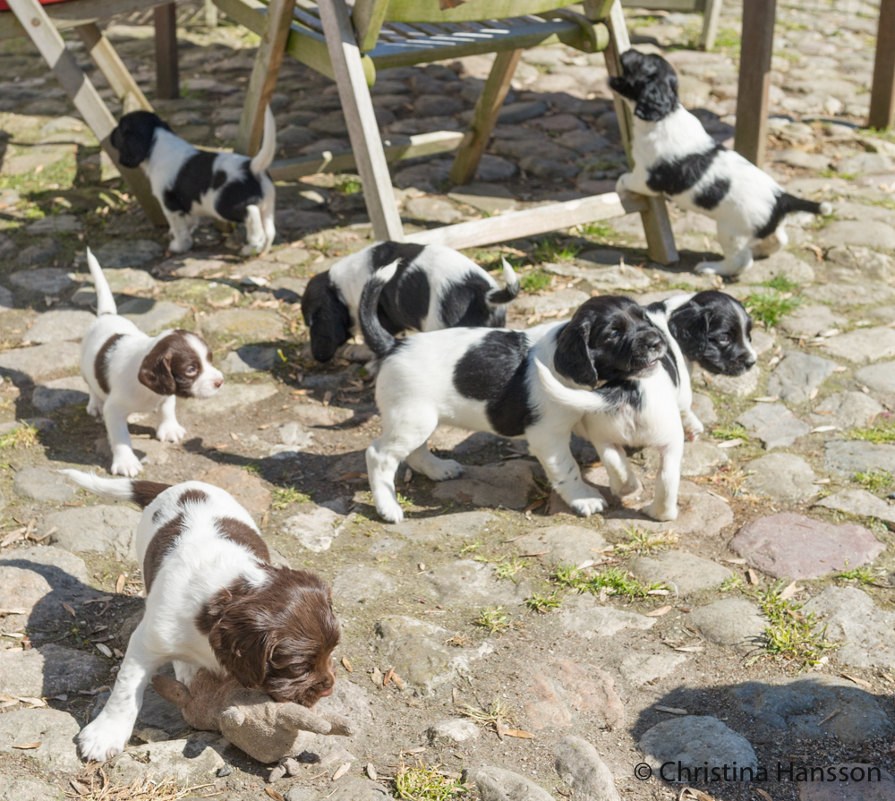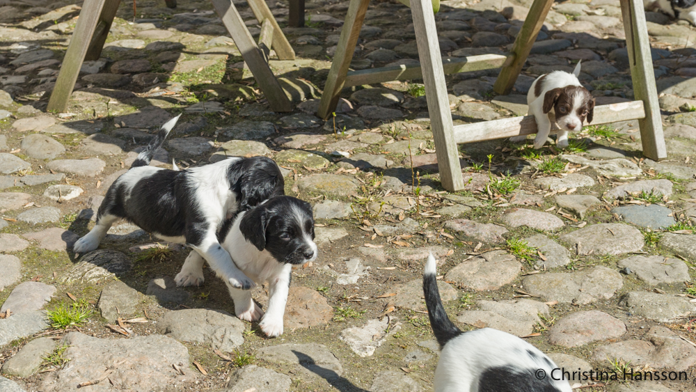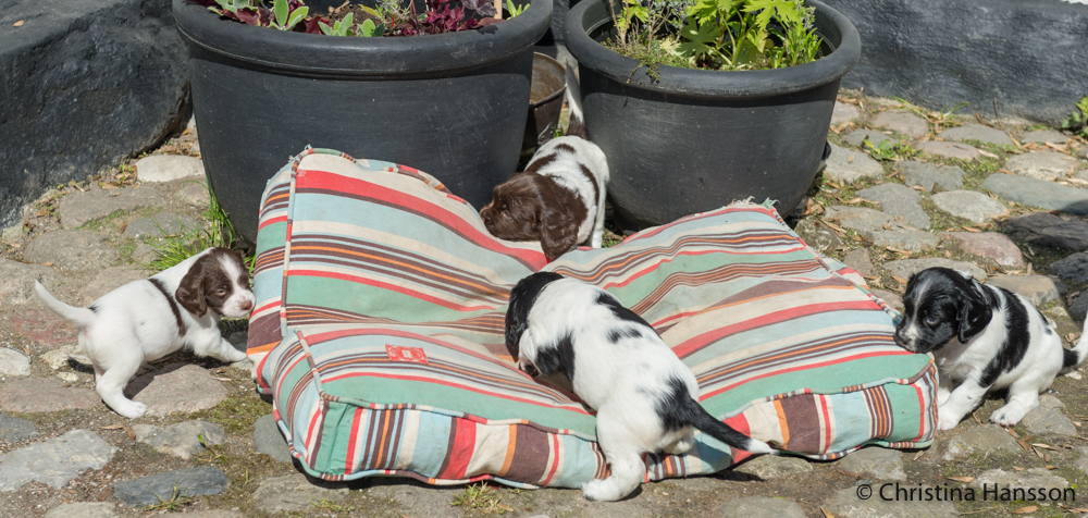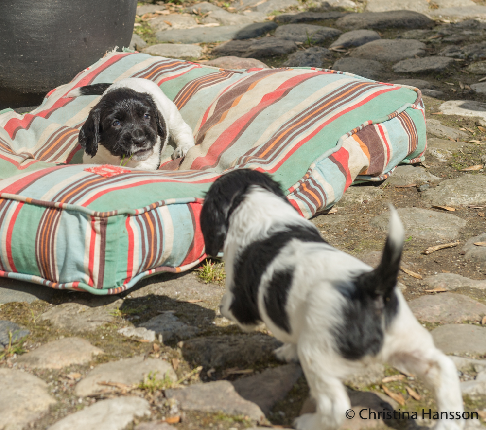 Vilket äventyr det blev för de små, då de för första gången spatserade runt på innergården med en massa spännande dofter och en mamma, som blev jätteglad över ytterligare storlek på lekhagen.