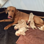 Tinas barnbarn House of Game Magpie väntar valpar vilken dag som helst med GBFTCH Rollafields Redbud at Naxshivan. Uppfödaren heter Marie af Ugglas och har Hibou Gundogs som finns på afugglas@icloud.com.