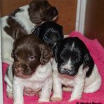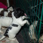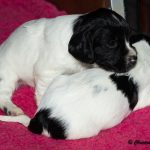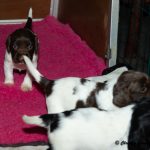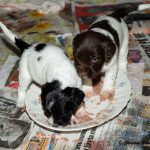 Efter en försiktig start då valparna bekantat sig med de andra hundarna genom kompostgallret har de nu börjat vistas mer och mer utanför biabädden och buren och leker då tafatta lekar med varandra. De har fått börja smaka annan mat än mammas mat, det var spännande och – kladdigt. Bordsskicket är väl sådär…..