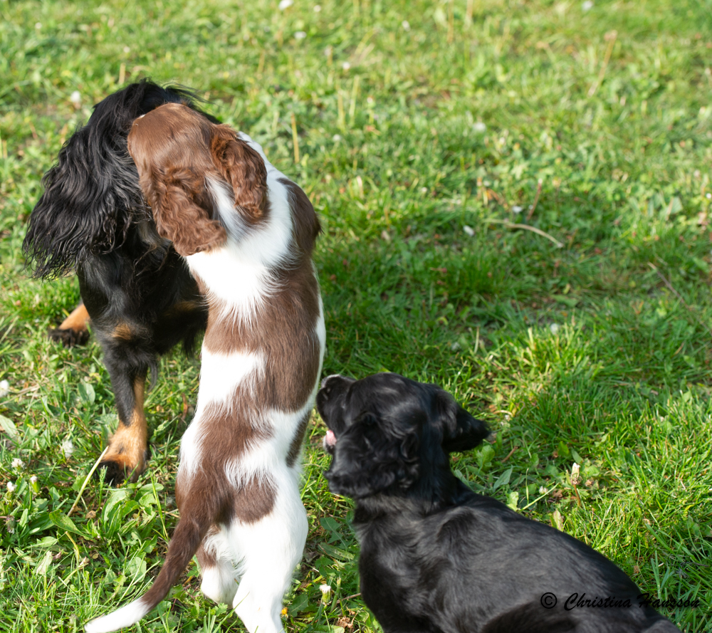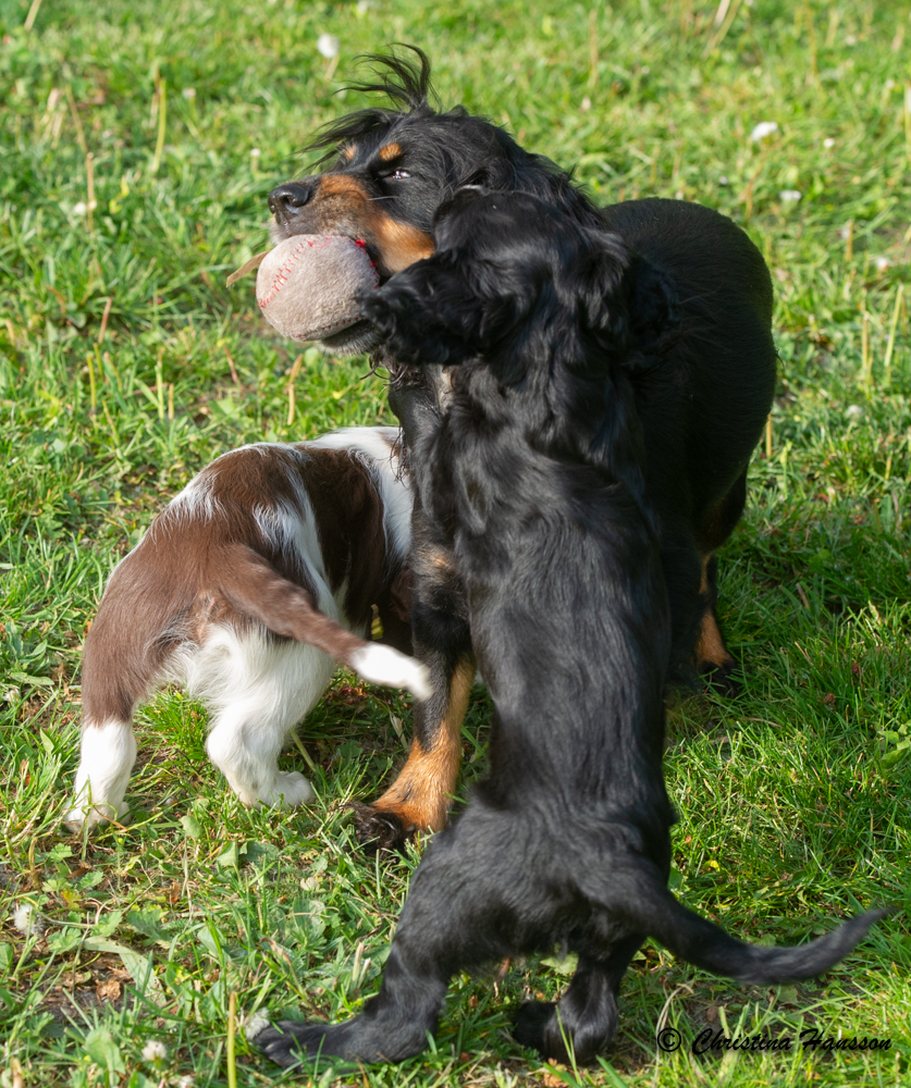 Plötsligt händer det heter det ju – och äntligen blev det PLÖTSLIGT! Flash junior har fått kompisar. Många kompisar på en gång. Exas två valpar och Zitas två blev plötsligt lagom för lilleman att tampas med och från 0-100 % kompisar gick det 4 sekunder.