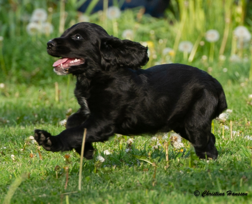 Flash junior är otroligt behaglig och positiv till allt. Obekymrad på en cockers speciella sätt men även eftertänksam och iakttagande. Full fart och all in oavsett om det gäller upptåg eller mys.