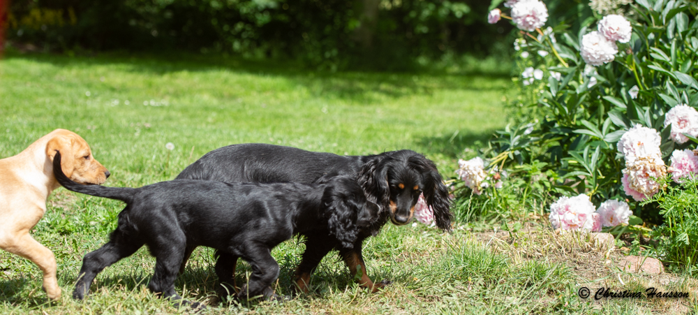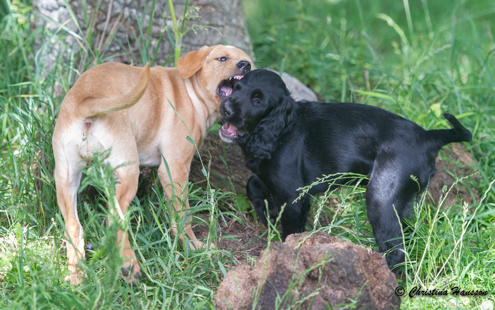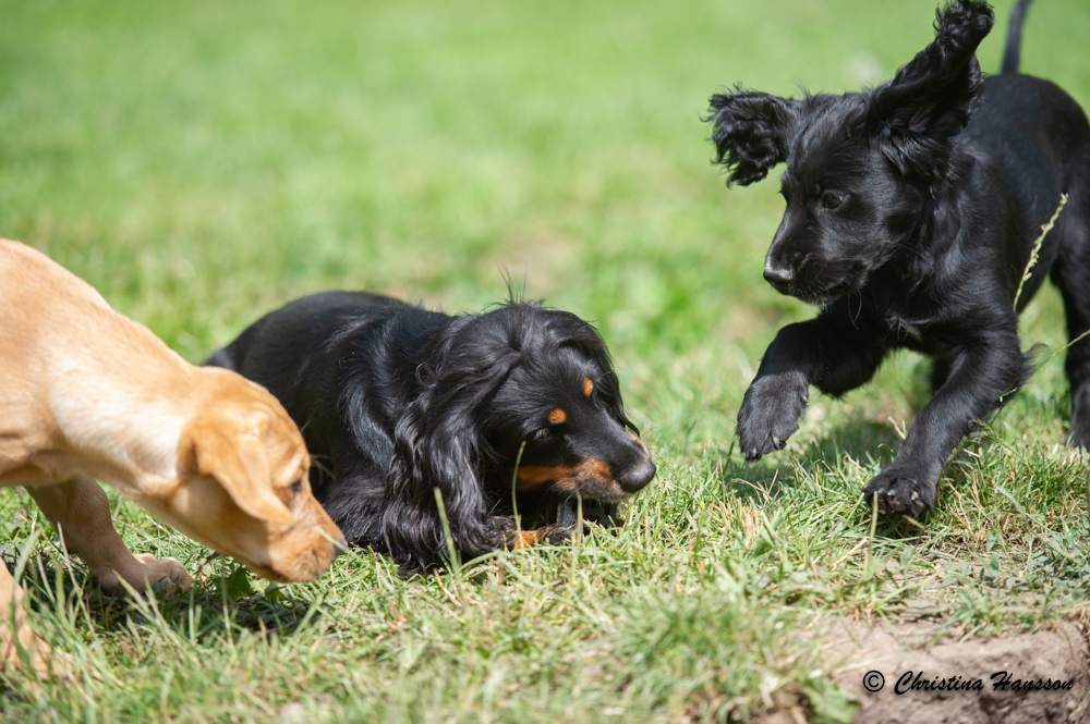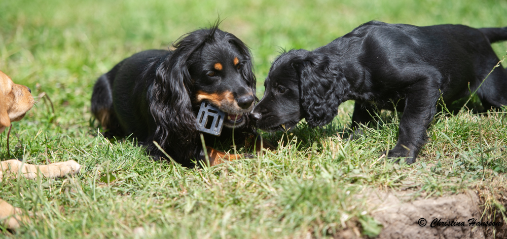 I midsommar har hon haft kul sällskap av Todd, eller Flash junior, som jag kallade honom. Todd är ju en vecka äldre och på klassiskt cockermanér så tar han alla med storm – även Gnista! Så härligt återseende!