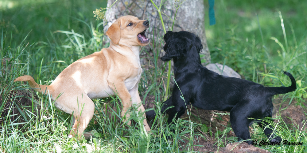 Flamma & Plays valpar har nu bott hos sina nya familjer i en månad. Snart ska vi ses igen för ”valpträning” eller bättre sagt kanske – människoträning.