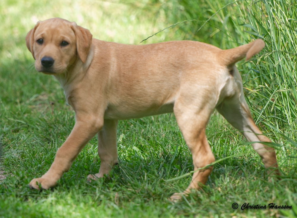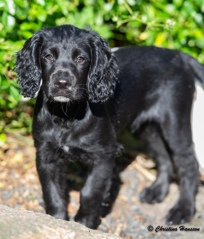 Gnista, som stannar kvar hos mig och mamma Flamma, var en av de större tikarna i kullen och besitter helt klart en stort portion charm och coolhet. Lugn och sansad ,men full av liv och fart när det gäller upptåg och lite kul lek med matte.