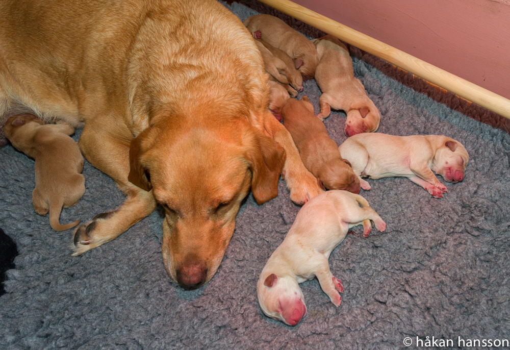 Mitt i all valpyra så kom det alldeles bort att en av de finaste mammorna – FLAMMA – och hennes guldiga syskon – fyllde 6 år den 19 juni.