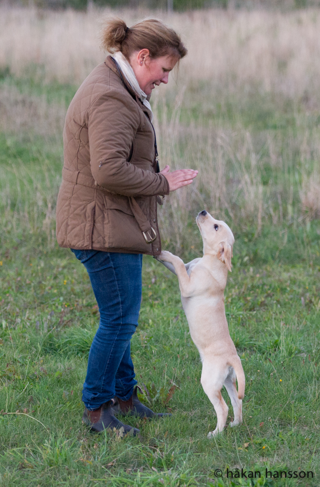 Så var det äntligen dags för Mary & Brimsons valpar att återförenas. 13 veckor gamla startade vi upp valpträningen. Följsamhet, kontakt och roliga apporteringar är det som står på schemat – allt för att skapa en fin och stabil teamkänsla mellan hund och förare.