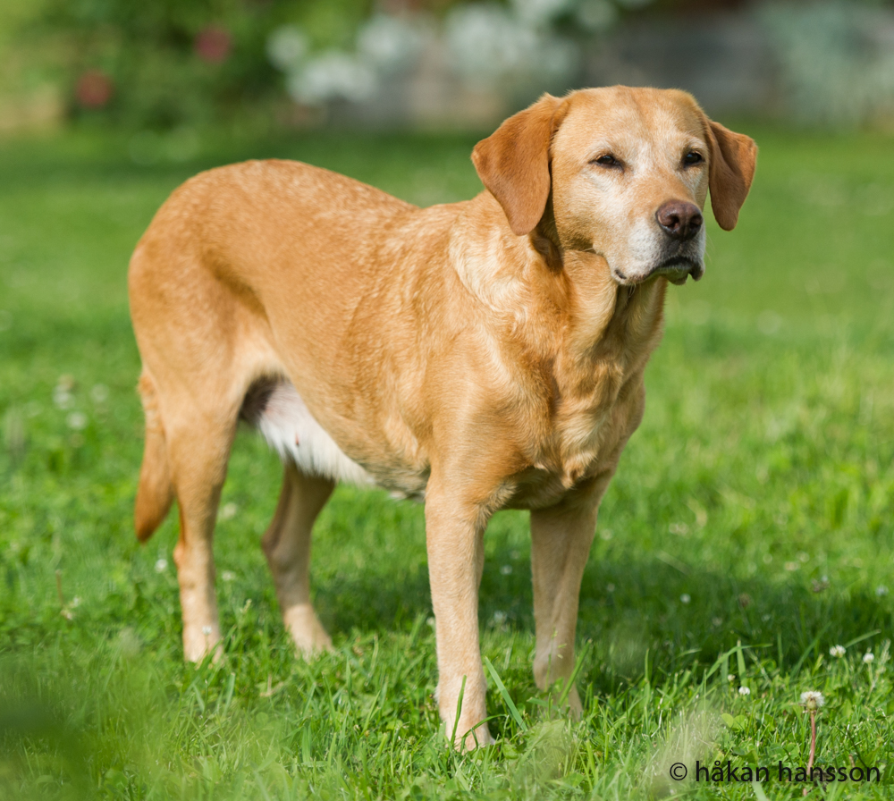 Mary idag är vit om nosen och aningen trött, men så fantastiskt fin mot sitt lilla ”barnbarn” Honey och älskvärd mot alla i sin omgivning. Fåtöljen i köket lämnar hon inte gärna, men ett par gånger om dagen hänger hon med ut på promenad och då alltid med något i munnen.
