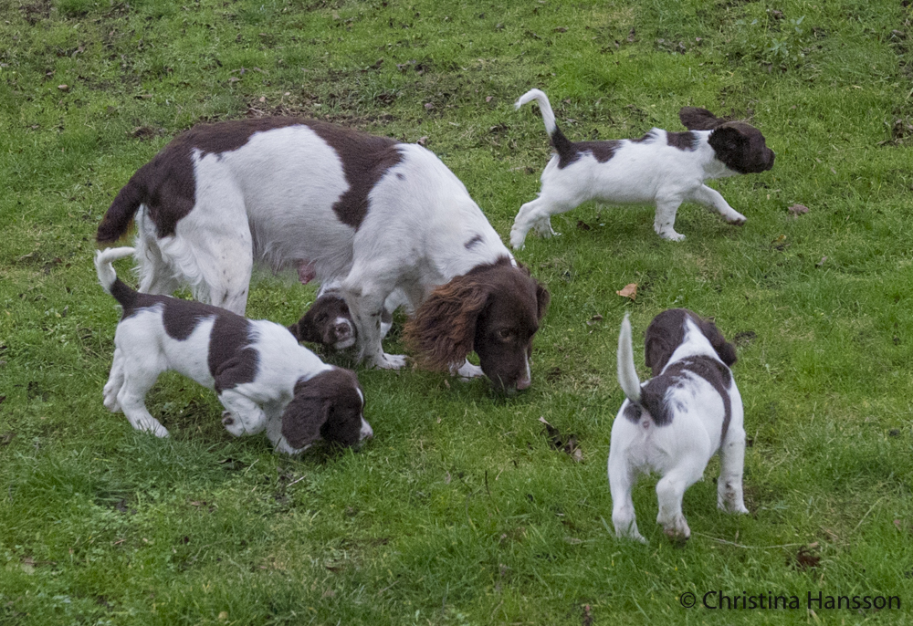 På 8 veckorsdagen så åkte första valpen till sitt nya hem. Country Sports Kilbeggan flyttar hem till ”gamla” valpköpare i Kågeröd och Jönssonligan blir nu komplett med valpen (Dynamit) Harry! Lycka till Linda & Andreas (som sedan tidigare har Roughshooters Svea Viking och Country Sports Honey från mig)