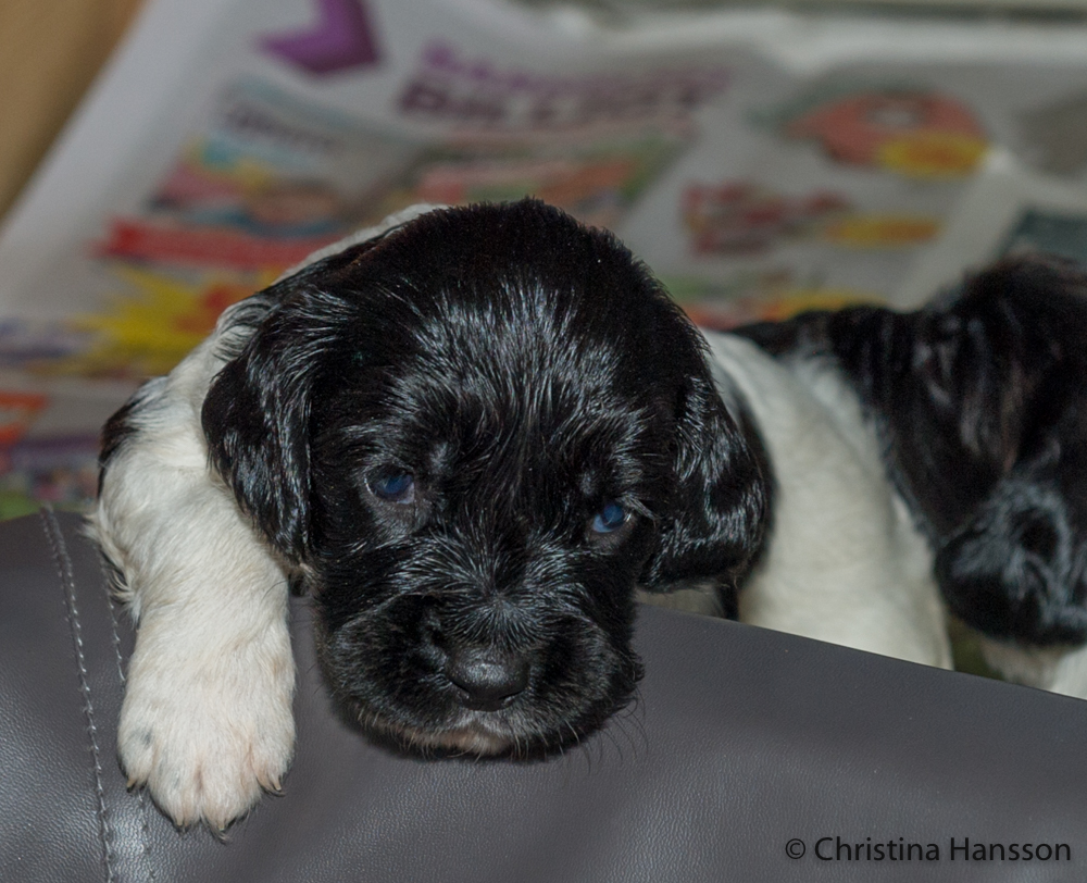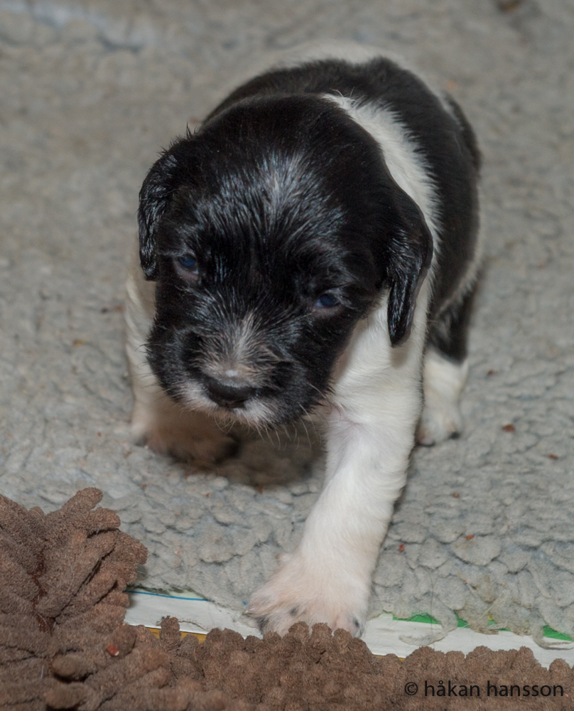 Här var dagen D slagen för hanvalpen, som traskade över kanten redan på dag 16! Det blir något att bita i….