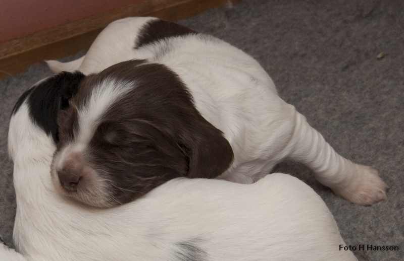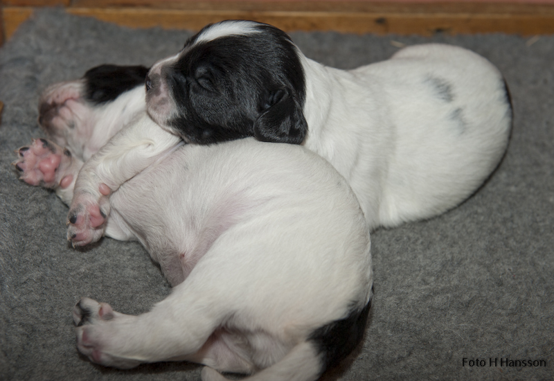 Mamma Etta har MASSOR av mat och valparna väger nu mellan 1550 – 1750 gram. Störst är förstås Grabben, som ser till att ta för sig rejält.
