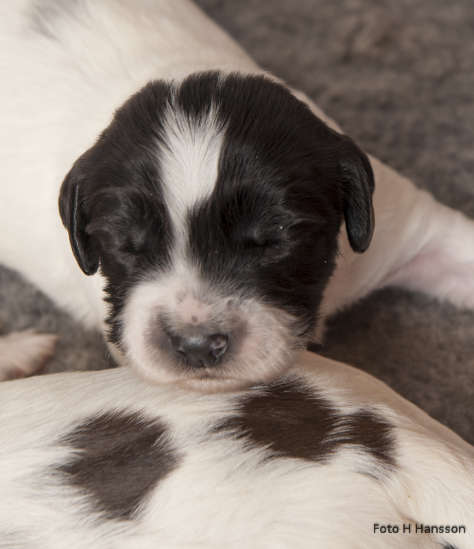 Oj vad tiden går! Ettas valpar är nu 14 dagar gamla och nu börjar det hända saker i lådan.